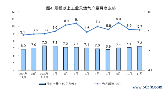 国家统计局:11月份规上工业天然气产量219亿立方米,同比增长5.7%国家统计局:11月份规上工业天然气产量219亿立方米,同比增长5.7%