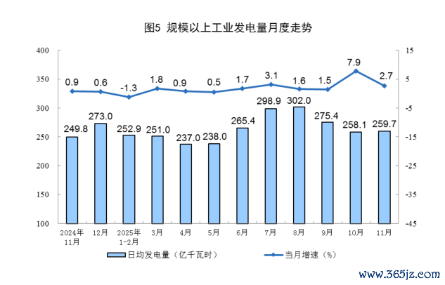 国家统计局:11月份规上工业发电量7792亿千瓦时,同比增长2.7%;国家统计局:11月份规上工业发电量7792亿千瓦时,同比增长2.7%;